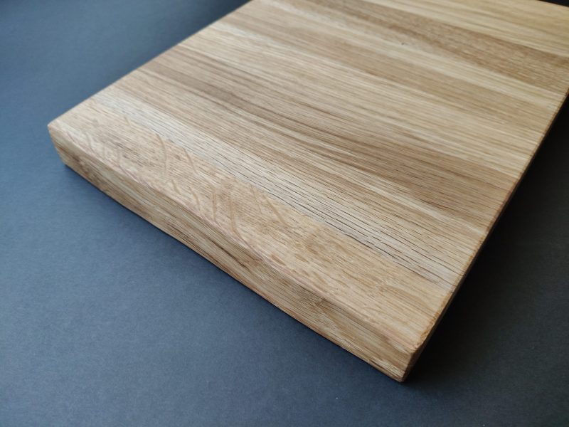 Deska jest w wymiarach 26 cm szerokości, 34 cm długości a grubość 3,3 cm. Deski są z drewna dębowego, deska waży ok 2,1kg.
