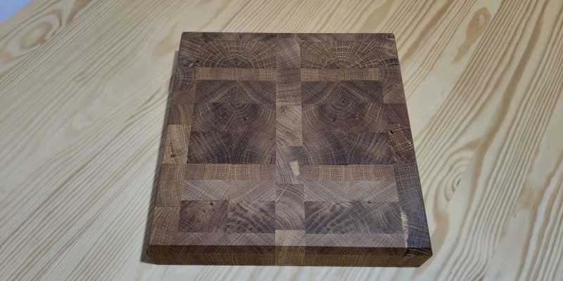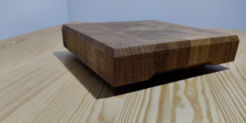 Deska jest w wymiarach ok. 21,5 cm szerokości, 22,5 cm długości a grubość 4,3 cm. Deski są z drewna dębowego. Deska waży ok 3kg.